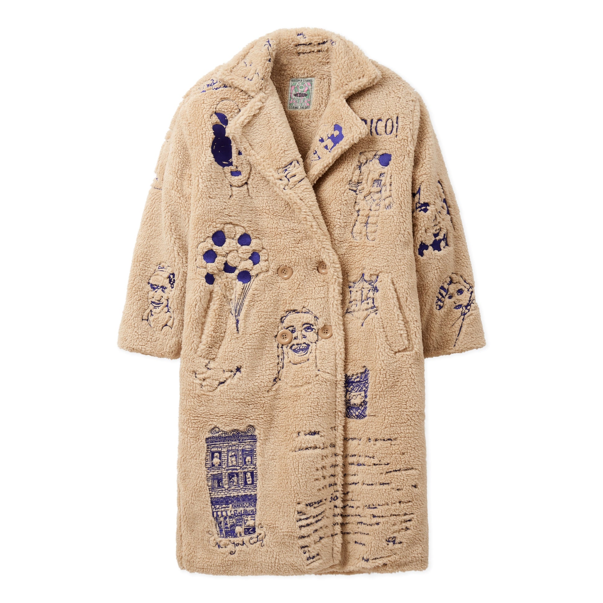 Embroidered Sherpa Fleece Overcoat [Cream]