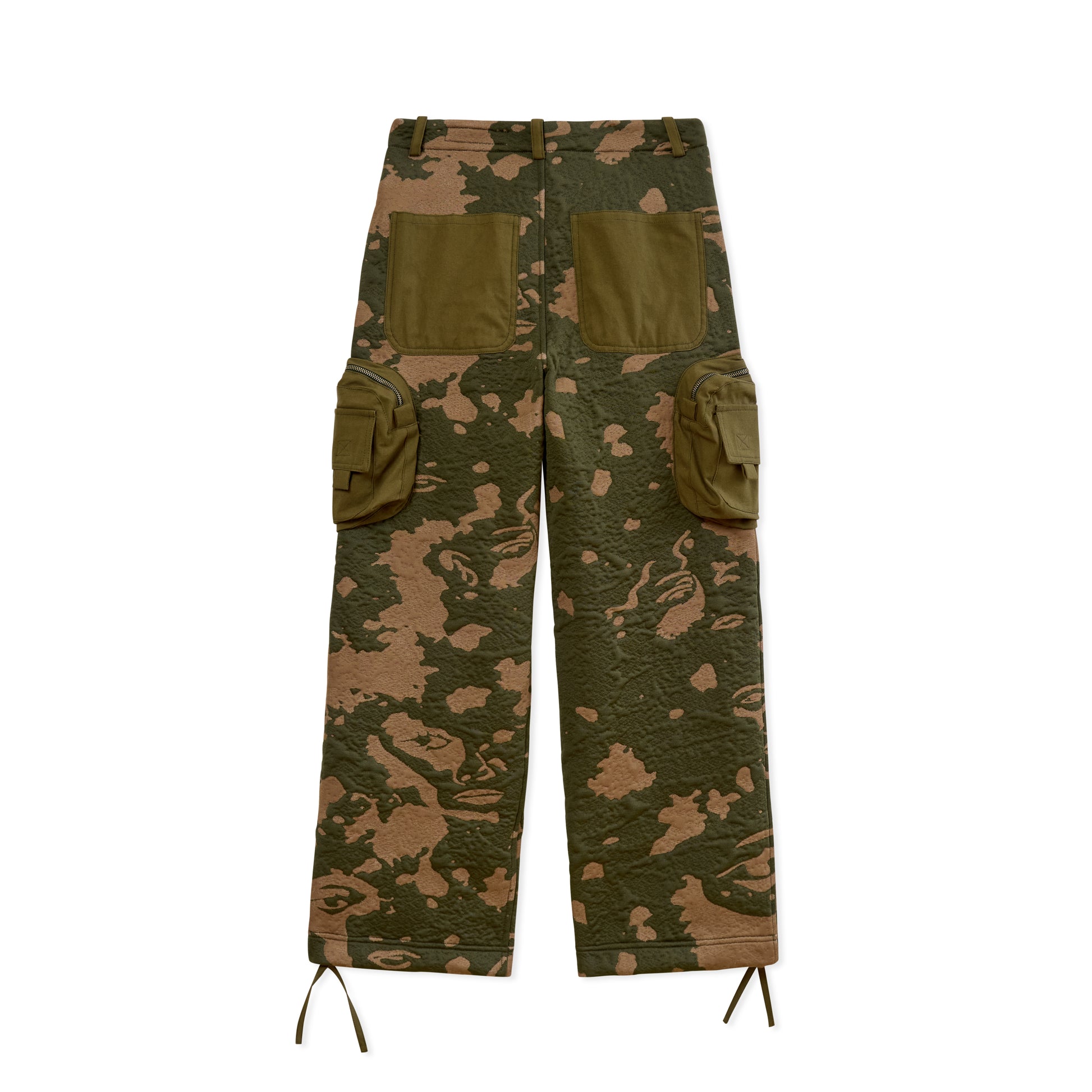 Made from 3D knit fabric developed from recycled fibers and textile structures, the 3D Knit Cargo Pants feature a straight-cut cargo style, full-bodied construction, and a camouflage pattern integrated into the fabric itself, composed of classic faces designed by Colm Dillane.
