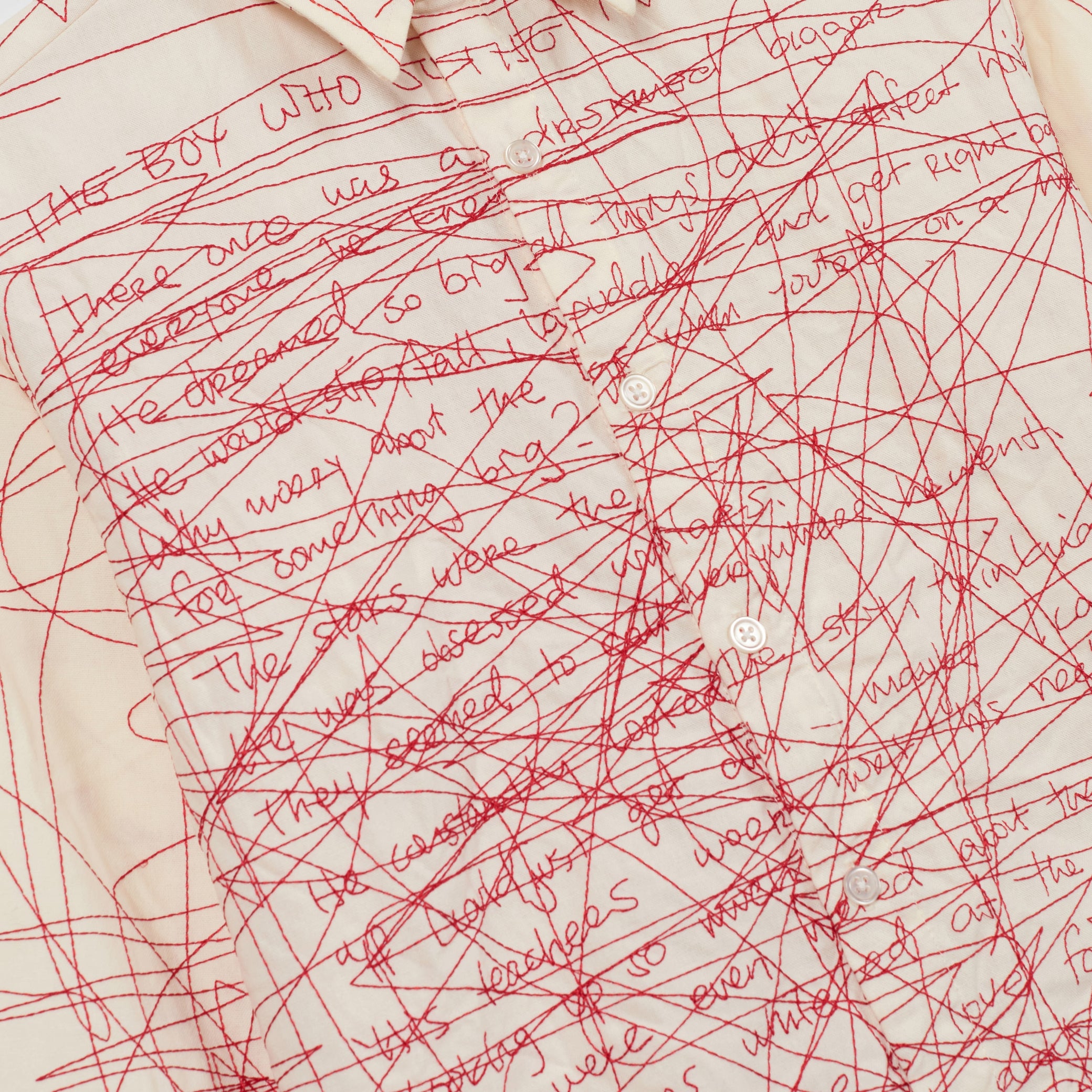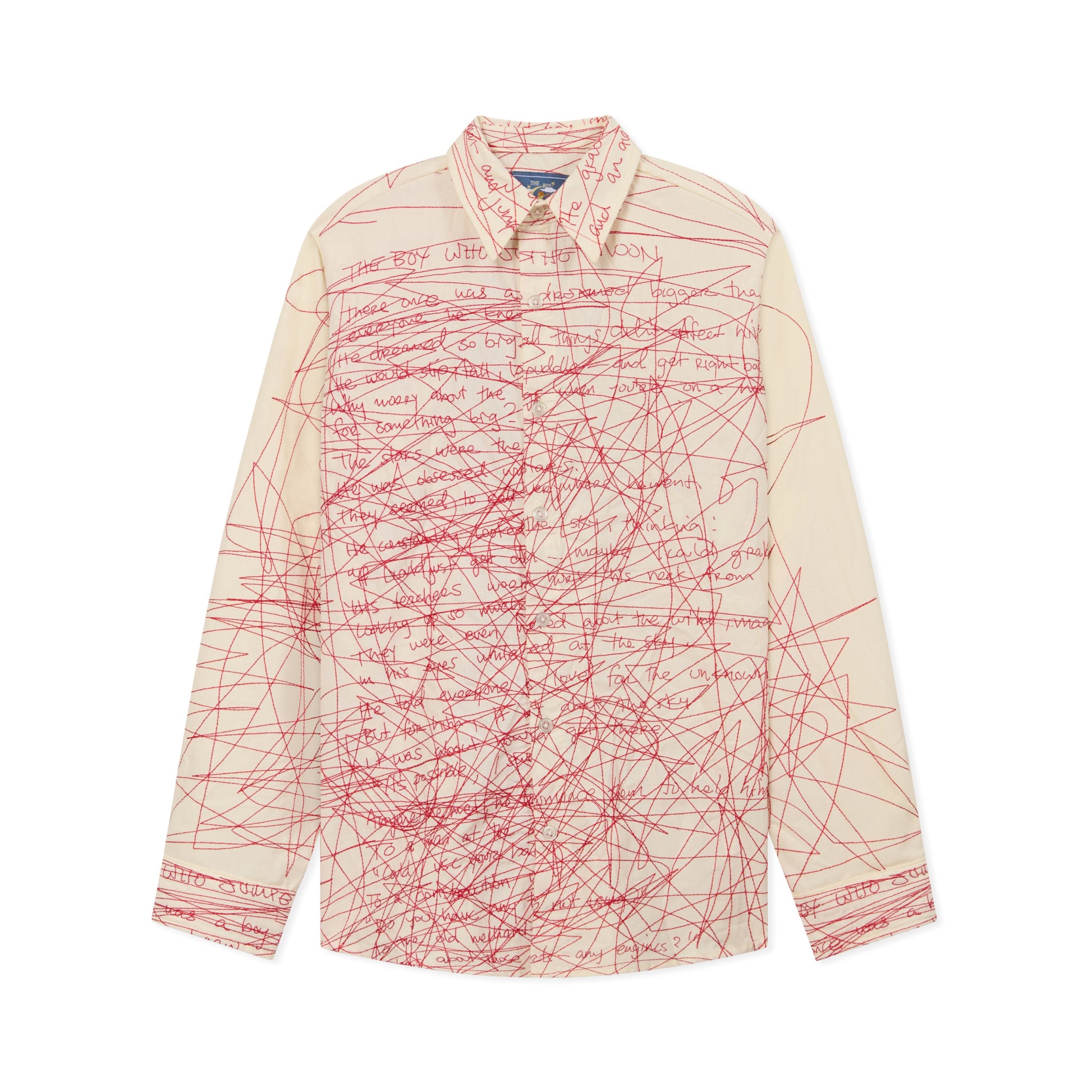 Manuscript Embroidered Shirt [Cream/Red]